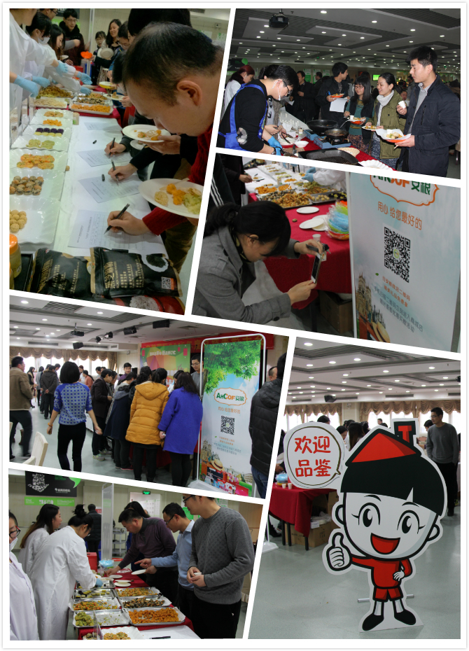 為了進(jìn)一步推廣“田田屋”、“安可?!眱纱笃放破煜碌娜庐a(chǎn)品, 安糧實(shí)業(yè)經(jīng)過精心策劃、認(rèn)真組織,在安糧員工餐廳開展了一場別開生面的新品品鑒和互動活動。此次活動重點(diǎn)展示了包括冷凍調(diào)理食品、進(jìn)口紅酒、健康養(yǎng)生食品、進(jìn)口調(diào)理肉食在內(nèi)的四大系列新品。冷凍調(diào)理食品中的香口薯芝、五彩蔬菜烙、什錦魷魚圈、菇米花、香菇魷魚餅、花桂薯緣、翡翠蔬菜圈;健康養(yǎng)生食品中的雜糧粉飲品、茶樹菇、黑木耳、干筍衣、干香菇等產(chǎn)品均是首次亮相。大家一邊品嘗著盤中的美食、杯中的美酒,一邊認(rèn)真填寫調(diào)查問券對產(chǎn)品的色澤和口味做出評價(jià)。許多員工還對購買產(chǎn)品產(chǎn)生了濃厚興趣,紛紛在現(xiàn)場掃描微店二維碼,并開心地參加了抽獎、拿到了心儀的贈品。