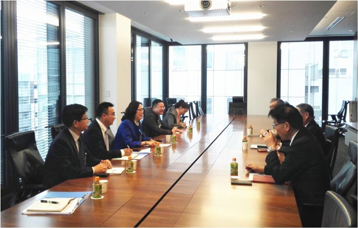 根據(jù)安糧集團(tuán)成立四十周年組委會(huì)工作安排和要求以及安糧實(shí)業(yè)對(duì)日業(yè)務(wù)拓展的需要,2016年4月13日,安糧實(shí)業(yè)石紅董事長(zhǎng)率領(lǐng)果菜訪日?qǐng)F(tuán)組一行六人在東京訪問了日本水產(chǎn)株式會(huì)社(以下簡(jiǎn)稱日水)本部并代表安糧集團(tuán)邀請(qǐng)細(xì)見社長(zhǎng)參加安糧成立四十周年慶典活動(dòng)。訪問團(tuán)受到了細(xì)見社長(zhǎng),大木常務(wù)執(zhí)行董事和山橋董事等日水高層的親切接見。