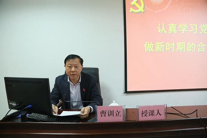 第二部分由安糧集團黨委委員曹訓立講授《認真學習黨章,做新時期的合格黨員》的講座,他依據(jù)“兩學一做”具體要求,針對黨員“四講四有”標準,結合公司實際,引經據(jù)典、旁征博引,與大家分享做一名合格黨員就是要做到“忠誠、干凈、擔當”的六字箴言。