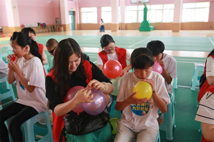 見面會上,團委書記方嘉亮向老師和小朋友們介紹了安糧集團情況及本次活動的安排。小朋友們?yōu)榘布Z集團的“大哥哥”、“大姐姐”們表演了舞蹈和古箏演奏,志愿者代表為小朋友們演唱了歌曲《隱形的翅膀》。孩子們雖然在聽力、視力、語言表達上有障礙,但是,精彩的舞蹈、動聽的琴聲、無邪的笑臉讓這樣一群“特殊”的孩子們更顯珍貴。表演結(jié)束,志愿者們用熱烈的掌聲表達內(nèi)心的感動與贊揚。才藝表演結(jié)束后,志愿者們與小朋友們“一對一”結(jié)對子,進行了一場生動活潑的吹氣球游戲,志愿者們還向小朋友們贈送了精心準(zhǔn)備的兒童節(jié)小禮物,孩子們?yōu)橹驹刚叽魃狭思t領(lǐng)巾。