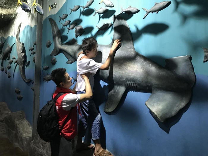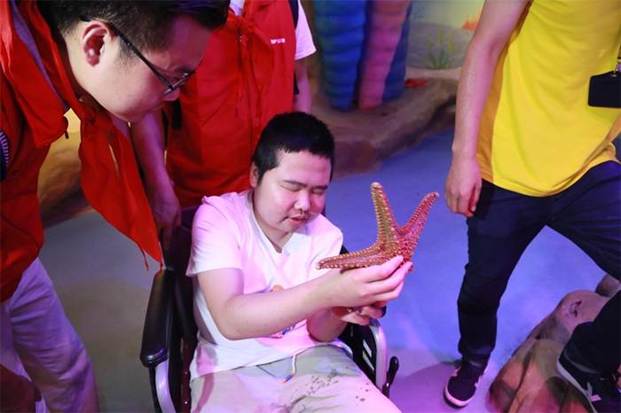 見面會結(jié)束后,志愿者們與小朋友手牽手,乘車來到合肥海洋館。珊瑚、魚兒五彩斑斕,海獅、海豚表演精彩紛呈,小朋友們因為聽力或視力障礙無法完全感受得到,但哥哥姐姐們用愛與陪伴、細心描述讓小朋友“看”到、“聽”到、感受到了世界的美好,純真的笑容背后是一個美麗多彩的世界。結(jié)束海洋館體驗,志愿者們與小朋友共同制作漢堡,共同享受了快樂的午餐。