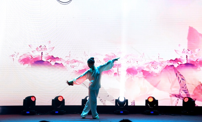 才藝展示環(huán)節(jié),選手們拿十八般武藝,各顯其能。一身素衣、文劍配身的王毓薇似仙子臨凡,在水墨丹青的畫卷中,挑云撥霧,仙姿綽約;李雨馨如青蓮?fù)癯?,纖指弄弦,撥一曲《酒狂》,古琴雅韻傳新聲;而有著溫柔端莊主持風(fēng)格的宣麗萍,意外地用充滿異域風(fēng)情的肚皮舞,給我們展示了多才和熱辣的一面。