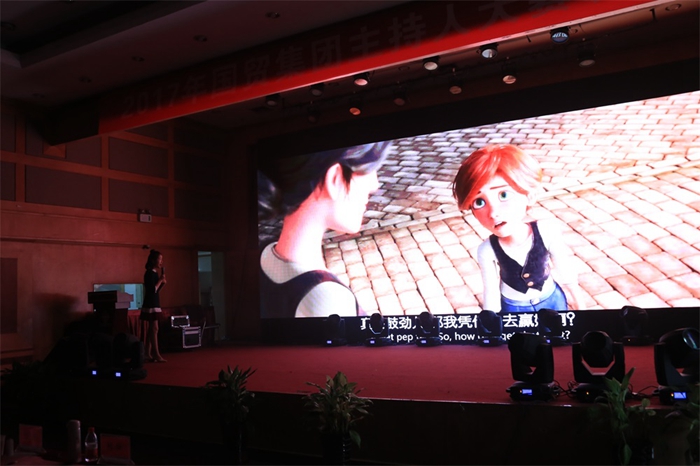 決賽分素質(zhì)表現(xiàn)、才藝展示、模擬主持等三個(gè)環(huán)節(jié)。素質(zhì)表現(xiàn)是由選手模仿或者自己設(shè)計(jì)一段節(jié)目進(jìn)行現(xiàn)場主持展示,考驗(yàn)的是選手作為主持人的基本功底。安糧的選手們準(zhǔn)備充分、各出心裁,有美食脫口秀、“國貿(mào)詩詞大會(huì)”,還有“國貿(mào)快訊”、國貿(mào)春晚等等。其中賈雙雙以少兒節(jié)目“國貿(mào)大風(fēng)車”主持人的身份登場,以其俏皮可愛的風(fēng)格、親切流暢的主持贏得現(xiàn)場“小伙伴”們的掌聲。