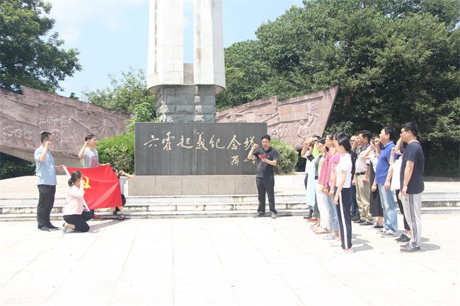 參觀完革命舊址群,頂著烈日和30多度的高溫,攀登144級臺階,大家來到了鄧小平親筆題寫的六霍起義紀(jì)念塔,在支部宣傳委員兼紀(jì)檢委員、副總經(jīng)理陳建軍帶領(lǐng)下,大家面對黨旗和紀(jì)念塔進行了莊嚴的宣誓活動。