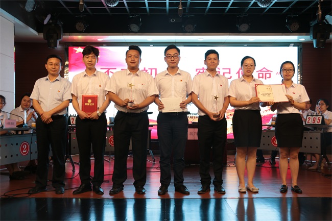 經(jīng)過支部考核、初賽等層層選拔,6支參賽隊伍最終脫穎而出,進入決賽。決賽題型分為選擇題、必答題、搶答題、風(fēng)險題和附加題,內(nèi)容涵蓋了習(xí)近平新時代中國特色社會主義思想、黨的十九大精神、黨章和黨內(nèi)法規(guī)、紀(jì)檢監(jiān)察、黨的歷史等內(nèi)容等相關(guān)知識。