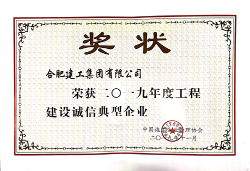 合肥建工獲評(píng)“2019年度工程建設(shè)誠(chéng)信典型企業(yè)”