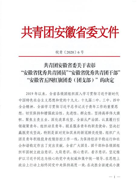 近日,共青團(tuán)安徽省委下發(fā)《關(guān)于表彰 2019 年度“安徽省優(yōu)秀共青團(tuán)員”“安徽省優(yōu)秀共青團(tuán)干部”“安徽省五四紅旗團(tuán)委 (團(tuán)支部)”的決定》(皖青〔2020〕6號)》,安糧集團(tuán)團(tuán)委被授予“安徽省五四紅旗團(tuán)委”稱號。