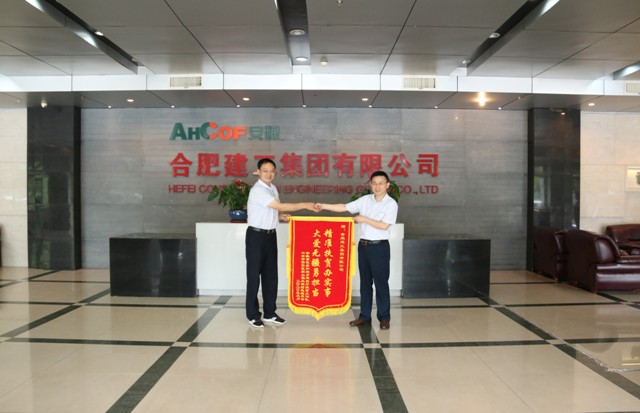 6月5日下午,安徽省建設廳駐太安村第一書記陳必喜率六安市裕安區(qū)、獨山鎮(zhèn)、太安村有關領導將一面書寫著“精準扶貧辦實事?大愛無疆勇?lián)敗钡腻\旗送到合肥建工黨委副書記、總經(jīng)理朱海生的手中,由衷地表達對合肥建工集團扶貧濟困的感激。