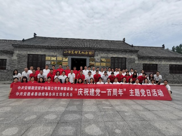 賀百年華誕,恰風(fēng)華正茂。在中國共產(chǎn)黨百年誕辰之際, 6月20日,安糧期貨黨支部與安徽卓泰律師事務(wù)所黨支部共赴中共壽縣小甸集特支紀(jì)念館開展“慶祝建黨一百周年”主題黨日活動,探尋紅色足跡,接受革命傳統(tǒng)教育。