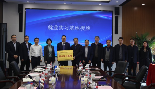 簽約儀式上,朱中文與胡笑旋代表雙方簽署戰(zhàn)略合作協(xié)議。韓文輝與郭志勇代表雙方交接了“就業(yè)實(shí)習(xí)基地”牌匾。