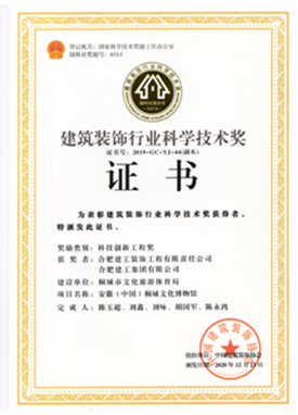 自2019年評(píng)選以來,公司申報(bào)的“安徽(中國(guó))桐城文化博物館”項(xiàng)目斬獲科技創(chuàng)新工程獎(jiǎng)一項(xiàng),總結(jié)形成的施工技術(shù)成果“不規(guī)則立面齒條型GRC幕墻施工技術(shù)”獲得科技創(chuàng)新成果獎(jiǎng)一項(xiàng),走在安徽省內(nèi)裝飾行業(yè)的前沿。之后相繼獲得兩項(xiàng)科技創(chuàng)新工程獎(jiǎng):合肥市第六十八中學(xué)改擴(kuò)建項(xiàng)目-綜合樓工程,六安市兒童醫(yī)院、金安區(qū)婦幼保健院醫(yī)療病房綜合樓裝飾裝修工程;兩項(xiàng)科技創(chuàng)新成果獎(jiǎng):“一種可開啟180度的裝飾消火栓暗門”,“ 基于3D建模技術(shù)高支模結(jié)構(gòu)與裝飾結(jié)構(gòu)共用盤扣腳手架安裝技術(shù)”。其中“一種可開啟180度的裝飾消火栓暗門”科技創(chuàng)新成果更是獲得一等獎(jiǎng)的好成績(jī)。