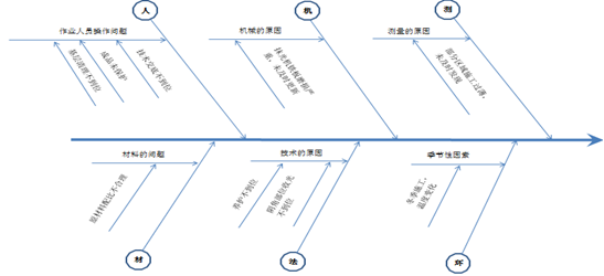 圍繞著“空鼓”和“開(kāi)裂”兩項(xiàng)主要缺陷,小組成員對(duì)整個(gè)施工流程進(jìn)行旁站,深入各個(gè)流程進(jìn)行檢查,召開(kāi)分析會(huì),運(yùn)用因素分析法從“5M1E”6個(gè)方面進(jìn)行分析、歸納出10項(xiàng)末端因素。