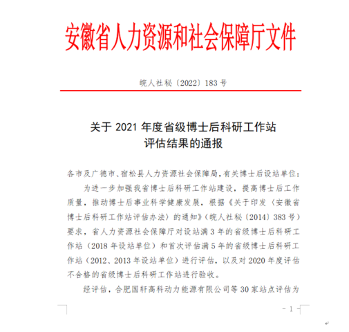 為加強博士后科研工作站建設(shè),推動博士后事業(yè)科學(xué)健康發(fā)展,安徽省人社廳對全省108家2021年度設(shè)站滿3年和首次評估滿5年的省級博士后科研工作站進行了綜合評估。最終,合肥建工博士后科研工作站等30家單位獲省優(yōu)稱號。