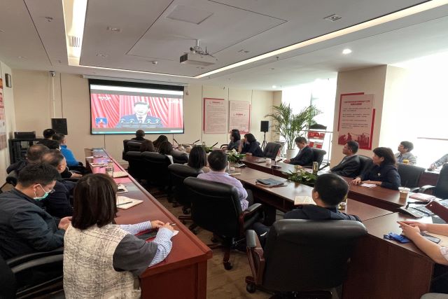當(dāng)天上午,在安糧中心3208會(huì)議室內(nèi),安糧集團(tuán)黨委書(shū)記曹訓(xùn)立等黨委委員,團(tuán)委委員,集團(tuán)、控股支部黨員,部門負(fù)責(zé)人以及子公司黨員領(lǐng)導(dǎo)干部、統(tǒng)戰(zhàn)人員代表集中收看了開(kāi)幕直播盛況,同志們聚精會(huì)神地聽(tīng)、專心致志地記,仿佛置身于大會(huì)現(xiàn)場(chǎng)。