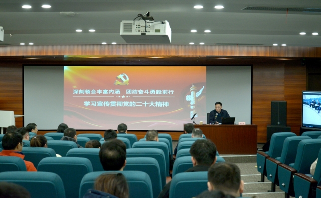 何汝才書記為安糧國際50余名黨員作了“深刻領(lǐng)會豐富內(nèi)涵 團結(jié)奮斗勇毅前行——學(xué)習(xí)宣傳貫徹黨的二十大精神”主題宣講。 他從深刻領(lǐng)會黨的二十大會議的重要意義、精神實質(zhì)、弘揚偉大建黨精神、深刻領(lǐng)會以中國式現(xiàn)代化推進中華民族偉大復(fù)興的歷史重任等四個方面系統(tǒng)、深入地解讀了黨的二十大精神重大意義、主題內(nèi)涵及核心內(nèi)容,并結(jié)合海螺集團、安徽國貿(mào)的發(fā)展對所有黨員干部作出要求。他強調(diào),學(xué)習(xí)宣傳貫徹黨的二十大精神是公司當(dāng)前和今后一個時期的重大政治任務(wù),要深刻領(lǐng)會黨的二十大報告對堅定不移全面從嚴(yán)治黨、深入推進新時代黨的建設(shè)偉大工程作出的重要部署;要堅持學(xué)思用貫通,聚焦主責(zé)主業(yè),堅持高質(zhì)量發(fā)展,切實把黨的二十大精神落實到各項具體工作和實際行動中,展現(xiàn)更大擔(dān)當(dāng)作為,為海螺集團“爭創(chuàng)世界一流企業(yè)”貢獻更大力量。