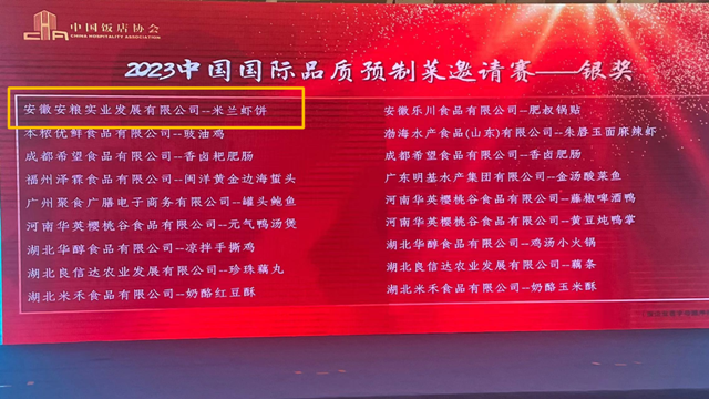 在本屆食材節(jié)閉幕式暨頒獎典禮上,安糧實(shí)業(yè)榮獲“最佳新品創(chuàng)意獎”,同時,田田屋“米蘭蝦餅”、“玉米烙”產(chǎn)品也分別獲“2023中國國際品質(zhì)預(yù)制菜邀請賽”銀獎、銅獎。