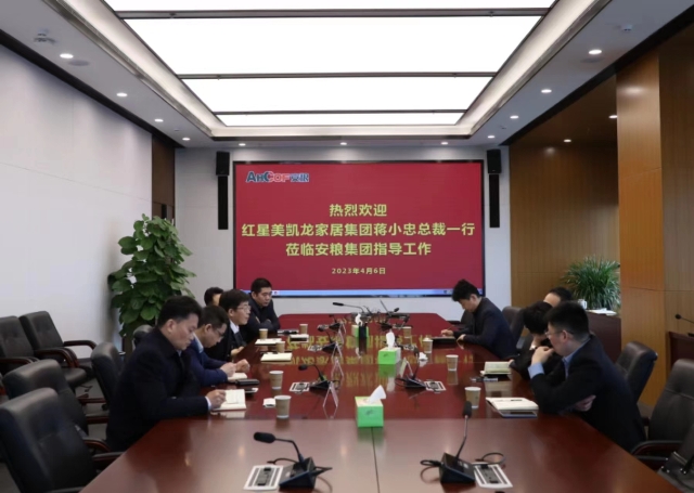 4月6日,紅星美凱龍家居集團股份有限公司黨委書記、總裁蔣小忠一行到安糧集團進行工作交流,安糧集團總裁方宗友等熱情接待蔣小忠一行并舉行工作座談。