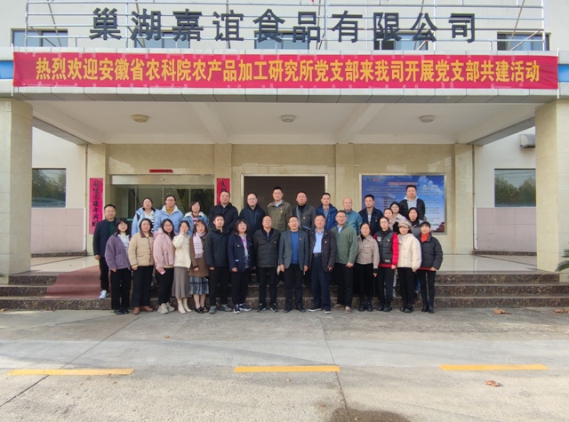 11月16日下午,安徽省農(nóng)業(yè)科學(xué)院農(nóng)產(chǎn)品加工研究所黨支部與巢湖嘉誼黨支部在巢湖嘉誼食品有限公司舉行了支部共建活動。雙方共同學(xué)習(xí)了習(xí)近平總書記關(guān)于科技創(chuàng)新的重要講話精神,并就促進預(yù)制菜產(chǎn)業(yè)的高質(zhì)量發(fā)展進行了友好的交流,加深了“產(chǎn)、銷、研”進一步融合。