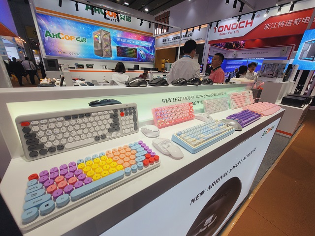 南方一部在本屆廣交會一期主要參展游戲電腦機箱產(chǎn)品,從入門級到高端游戲機箱齊全。部門在營銷展示上采用一系列新穎的形式,展臺的主通道采用目前比較流行的魚缸游戲機箱作為看點,用可藍牙連接手機和電腦的高端游戲機箱吸引客戶。為了突出參展效果,所有游戲機箱都裝上了RGB變色風扇。多樣化的變色風扇與南方二部的機械鍵盤吸引了大量客戶駐足觀看。消費電子展6個攤位,突出游戲類產(chǎn)品的裝修風格,搭配大氣的門頭、顯眼的海報燈箱,使客戶在進館時只需一眼就能夠鎖定目光。