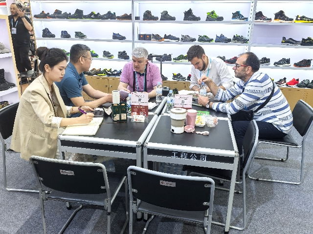 鞋類展區(qū)以“創(chuàng)新科技,時尚出行”為主題,集中呈現(xiàn)了運動休閑、戶外功能等多類產(chǎn)品。主打的輕便安全鞋采用先進的減震與防護技術(shù),兼具輕量化與高強度特性,獲得歐美客戶的高度認可,開展首日就迎來大量客戶詢價洽談;使用環(huán)保耐磨材料制成的雪地靴,憑借出色的保暖與防滑優(yōu)勢,成為北歐市場的潛力爆品。